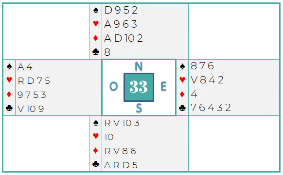 Le Roi de Cœur qui affranchit immédiatement une levée (cette entame s’imposerait si les adversaires ne s’étaient pas soutenus à Carreau).