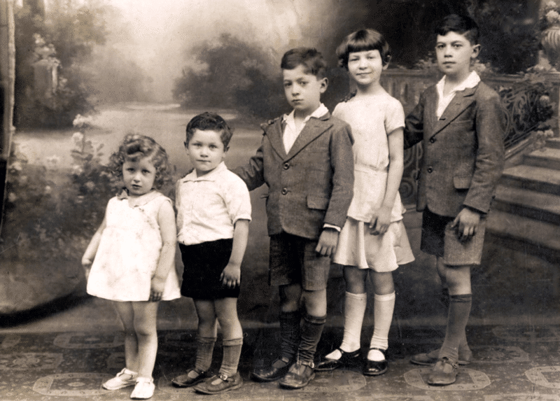 de gauche à droite : Michèle (3 ans), Camille (4 ans), Charles (8 ans), Annette (11 ans), Guy (12 ans)